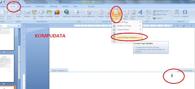 - Letakan kursor pada halaman 3 yang nomor halamanya akan diubah atau berbeda. . Lalu klik Insert >> Page Number >> Format page number .